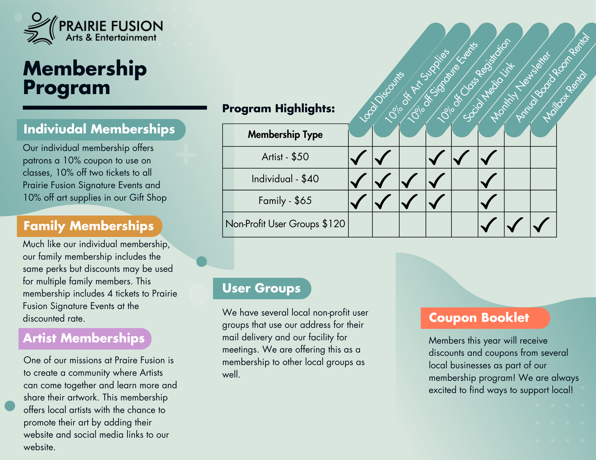 There are so many to get involved and support Prairie Fusion Arts & Entertainment.